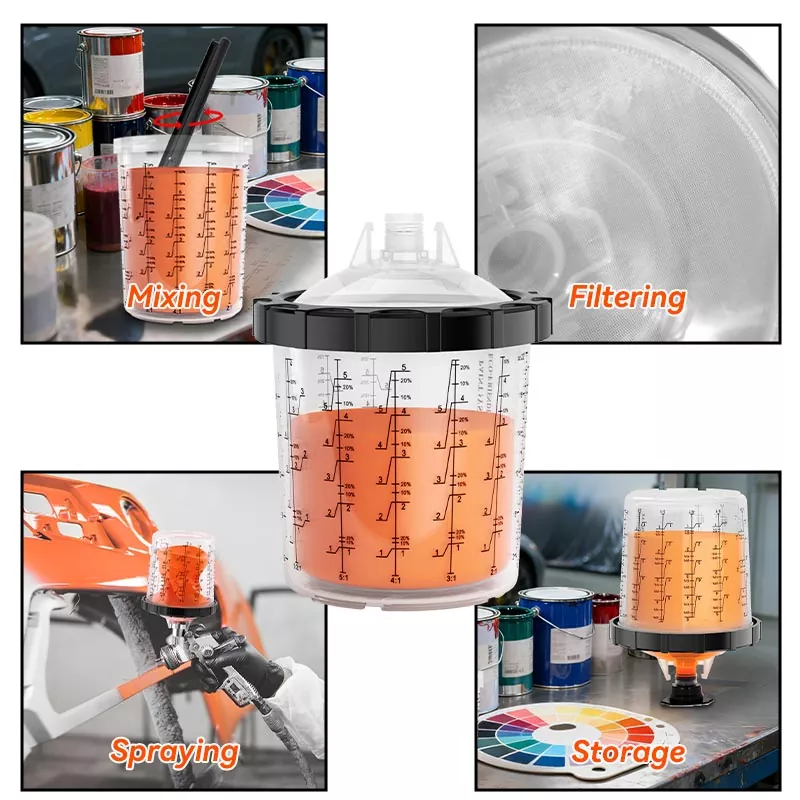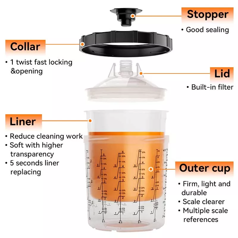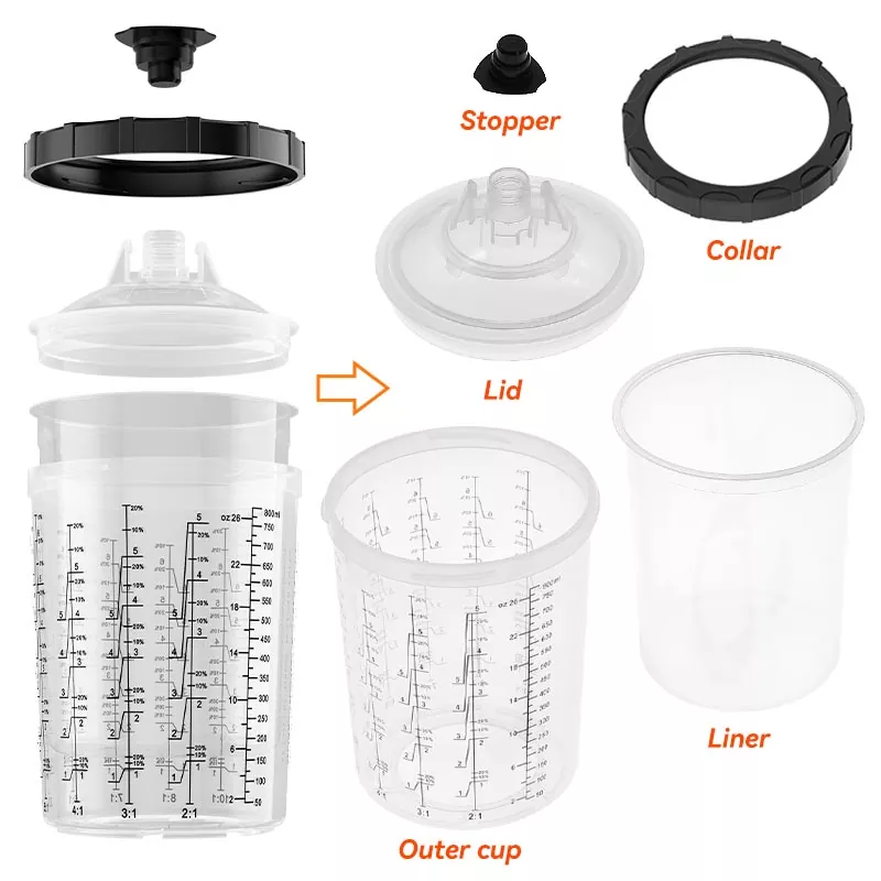 800ml jednorazový náterový pohár System 1.0 pojme 28,5 fl oz (850 ml) farby , je ideálny pre 4-panelové opravy alebo menej materiálu, vrátane veľkých sérií číreho náteru. Tento rad bol vyvinutý na zlepšenie efektivity práce a kvality nástreku, aby splnil očakávania každého maliara, je to vynikajúci alternatívny striekací systém na jednorazové čistenie pohárov. a efektívnejšie. Farbu je možné miešať priamo v striekacej nádobe a po každom použití je potrebné len minimálne čistenie. Ak chcete veľkoobchodne predávať nádobu na jednorazovú striekaciu pištoľ, kontaktujte nás, aby ste získali bezplatné vzorky na testovanie.