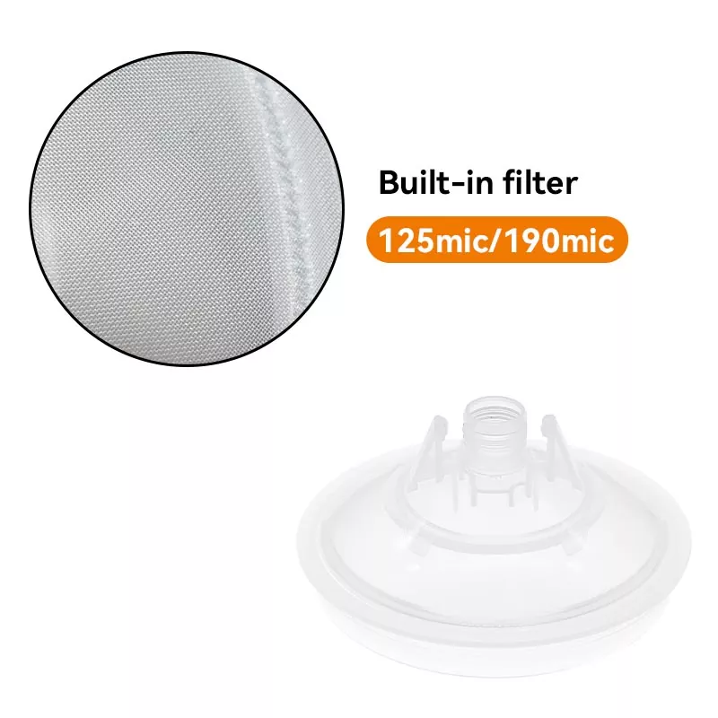 Veko má zabudovaný 190 µm alebo 125 µm ultra jemný filter, ktorý filtruje nečistoty farby počas striekania, chráni striekaciu pištoľ a zlepšuje kvalitu striekania. Nový integrovaný sieťový filter eliminuje potrebu kupovať a inštalovať filtre a kryty samostatne, čím je prevádzka pohodlnejšia a znižujú sa náklady na materiál.